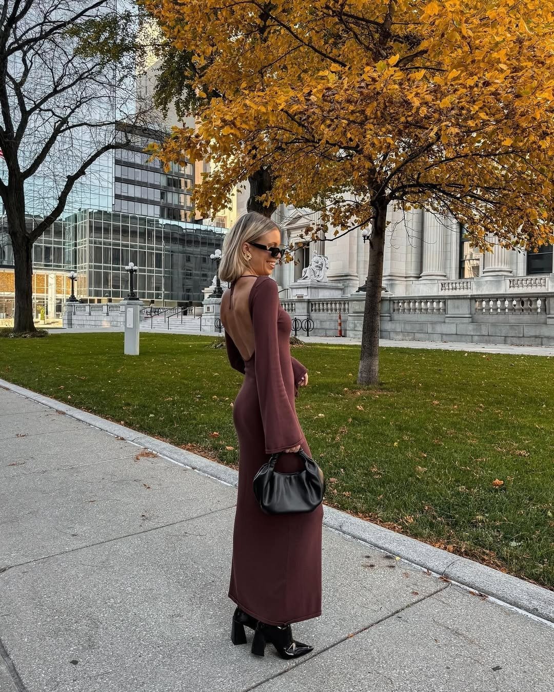 A ideia aqui é um visual com poucos detalhes, composto por cores sólidas ou estampas discretas. A bota de bico fino reforça essa estética mais minimalista e cria uma silhueta alongada com facilidade.