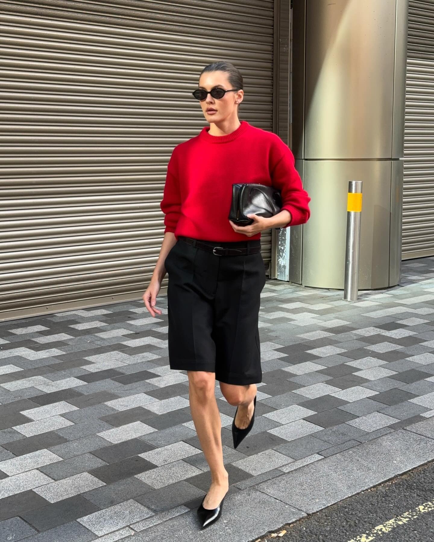 Que tal investir em um terno colorido, como o vermelho, que pode ser usado tanto em conjunto quanto separado? Para dar um toque extra, finalize com acessórios marcantes, como braceletes robustos, cintos, bolsa e sapatos na mesma cor.