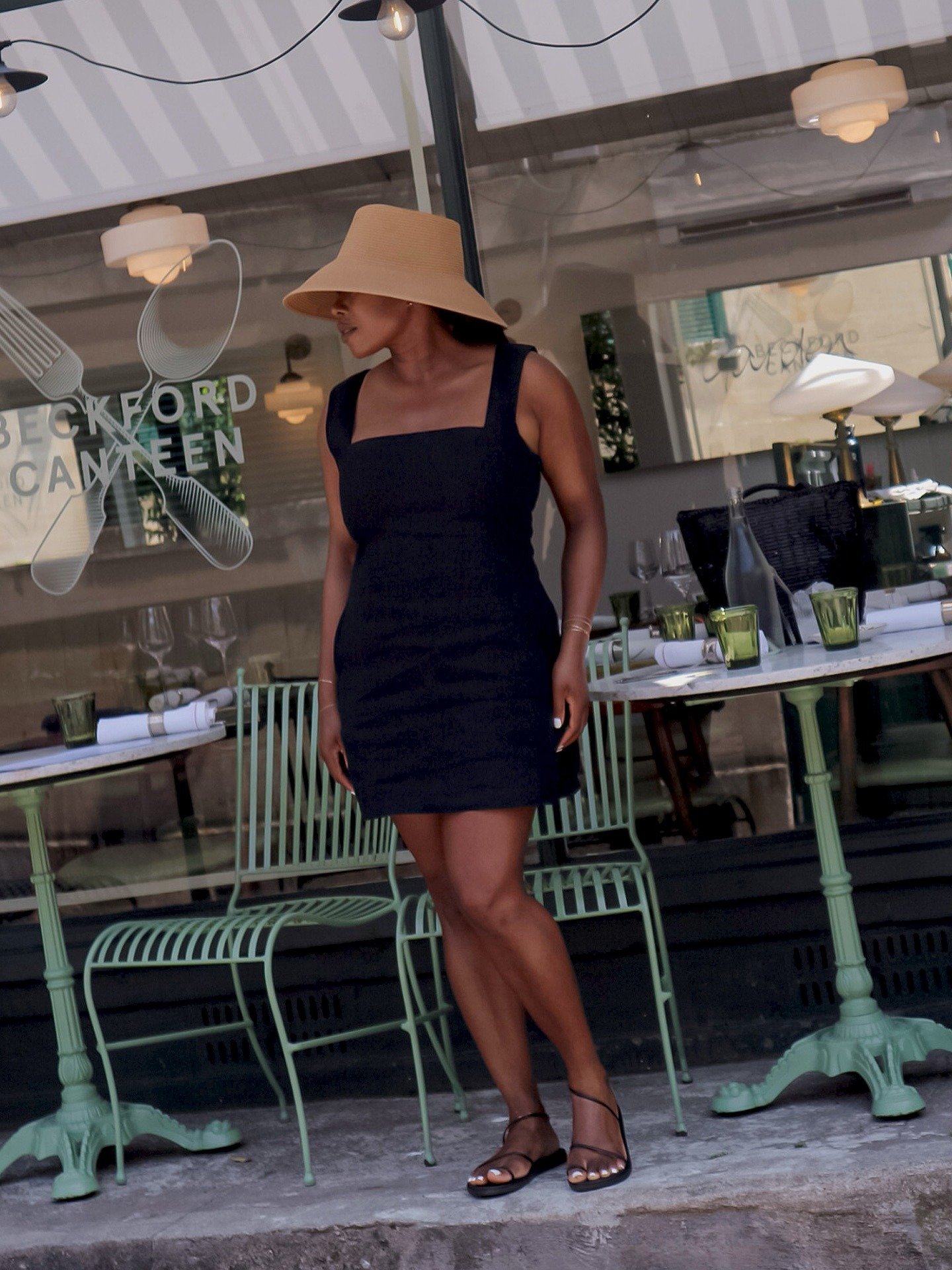 O pretinho básico nunca falha. Por isso, aposte em um vestido curto nessa cor, arremate com um chapéu de palha e uma sandália bem confortável.