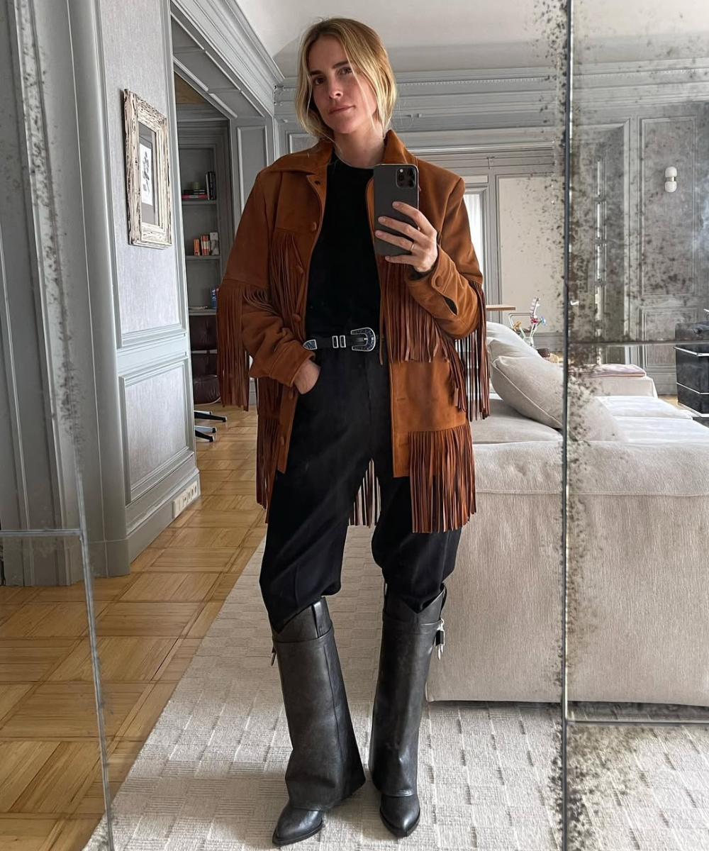 Apesar da leveza das franjas e do estilo boho, traduzir essas tendências para as peças de outono/inverno é um movimento que parece fazer muito sentido, considerando que o braço western do estilo traz um peso fashionista às produções. Nas vitrines, as franjas estão em peças desejo como as jaquetas e botas.