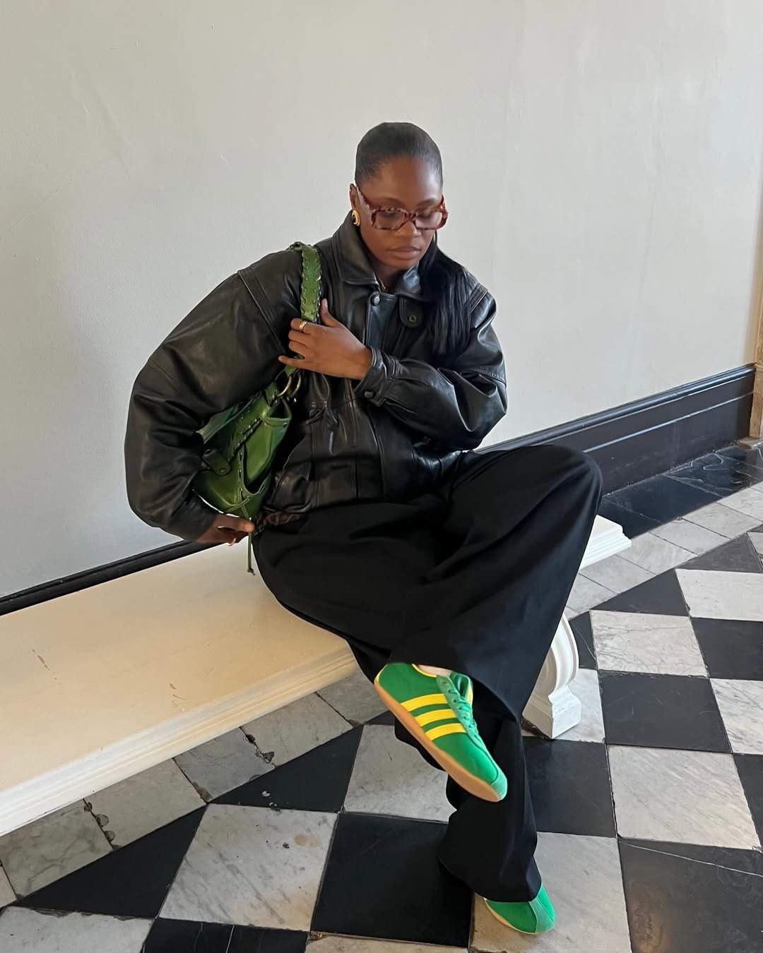 Quer um toque inesperado e moderno? O tênis verde é perfeito para isso, pois adiciona um ponto de cor interessante ao look sem perder a sofisticação.