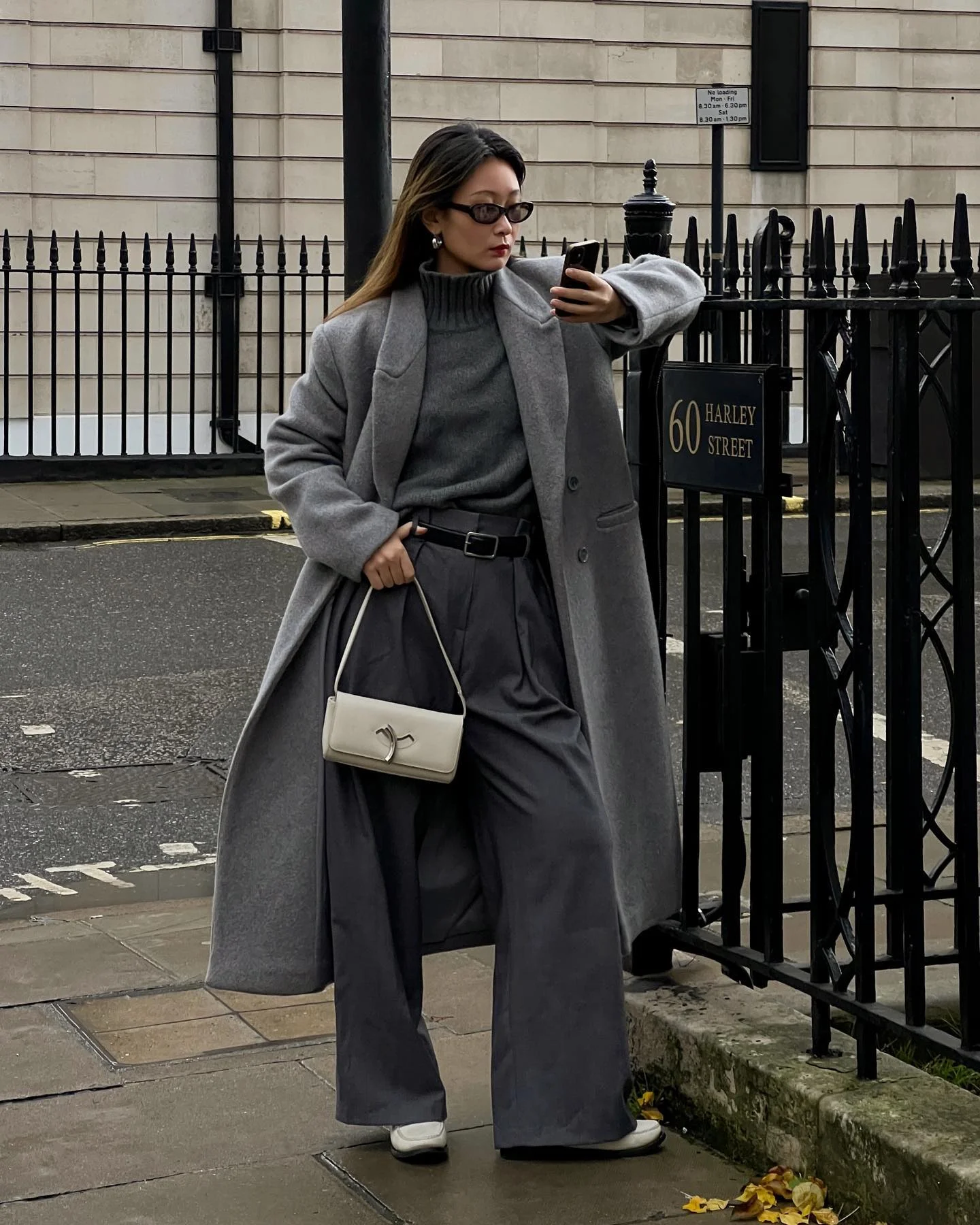 Para quem gosta de algo mais sóbrio, aposte em calça e tricô cinzas, criando um visual quase monocromático.