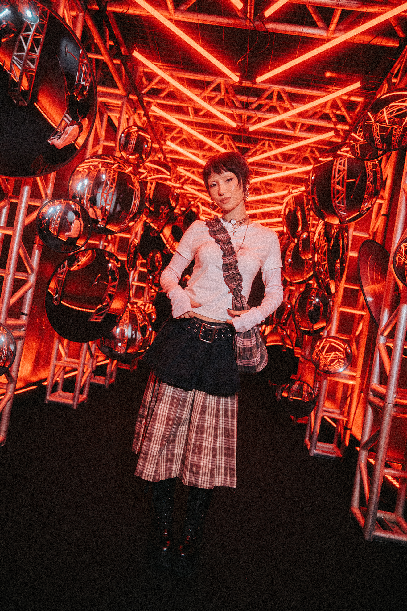 Na prática, isso se traduz em uma seleção fashionista com saias plissadas em sobreposição, jaquetas oversized e styling afiado — com gravatas e bonés aparecendo como protagonistas. A proposta conversa com o streetwear contemporâneo, mas com um toque autoral que foge do óbvio.